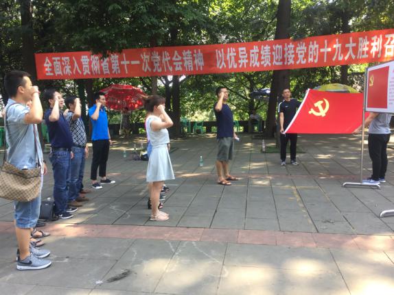 參觀完畢后,全體黨員來到趙一曼烈士雕像前,在支部書記衡洪飛的帶領下,對黨旗高舉右手,重溫入黨誓詞,現場錚錚誓言,鏗鏘有力。隨后,支部書記衡洪飛圍繞《四川省第十一次黨代會精神》為全體黨員上了堂生動的黨課,并組織黨員積極交流參觀感受和學習省第十一次黨代會精神的心得體會。黨員高峰同志抒發了自己的心聲:通過對趙一曼烈士身前英雄事跡的回顧,想到了他當兵時候的事,在參加越戰時他曾主動提出上前線打仗,當時他的很多戰友都犧牲了,但作為一名共產黨員他從未想過要退縮,“我們黨員是有信仰的,我們每個黨員心里是裝著國家和人民的”。